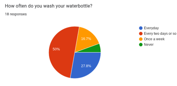 Do many of us really do it? I actually made a form for classmates to fill out and posted it on Instagram. I received responses back. It was pretty nice to see the results on how many students actually clean it everyday or so. Only one person responded that they never washed theirs, which was pretty concerning. Hopefully they read this article and make a change because they see the benefits. Another thing is that down below there is an image on how to clean your water bottle just in case you need guidance on where to start.